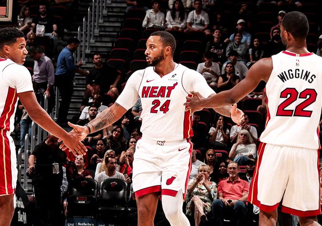 包括替補席上的保羅也早已進入下滑期,能控場,但沒有破局能力,防守也直線下滑。按這種方式打下去,快船內(nèi)部一定要出問題的,哈登上賽季那么辛苦都沒喊過自己累,本賽季打勇士時已經(jīng)不滿教練組安排了。而在東部,還有一支球隊很容易被忽略,就是熱火。熱火在揭幕戰(zhàn)中,4分惜敗魔術(shù),按照美媒預測,新賽季熱火大致在東部8-10名的位置,附加賽水平。但緊跟著熱火爆發(fā)了:打西部季后賽常客灰熊,146-114;打奪冠熱門尼克斯,熱火115-107;面對魚腩黃蜂,熱火干脆利落再度轟下144分!