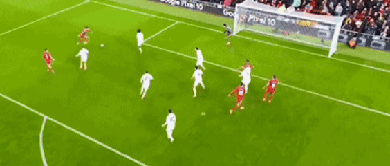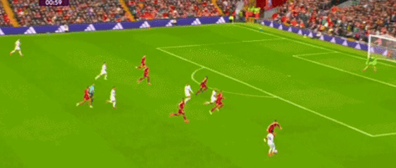 第21分鐘,索博斯洛伊中場直塞撕開防線,薩拉赫右路推進后順勢傳球,加克波插上低射擊中立柱彈出!