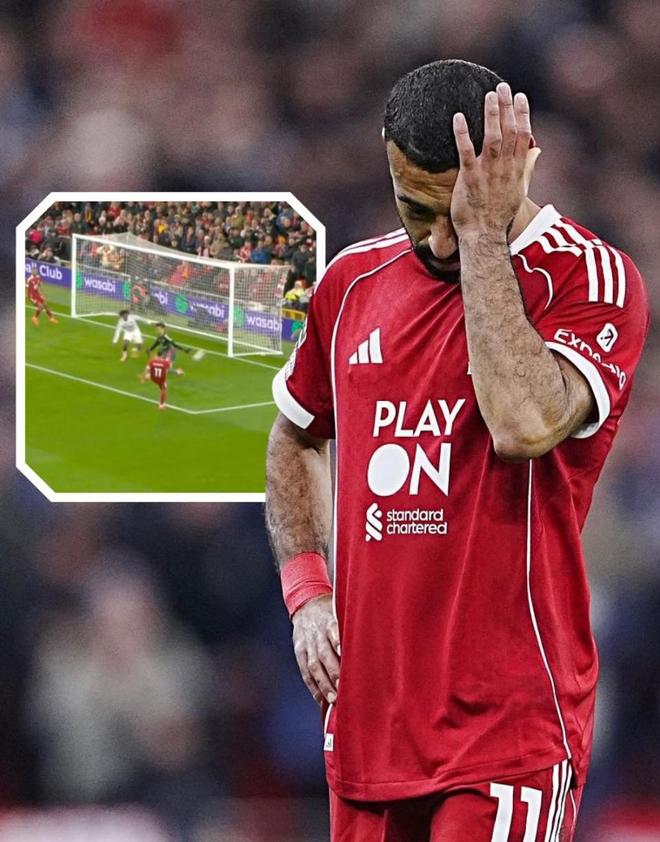第32分鐘,紅軍卷土重來。加克波接應薩拉赫分球,突入禁區(qū)左側一腳挑射越過門將,皮球竟再一次擊中立柱內側彈出!